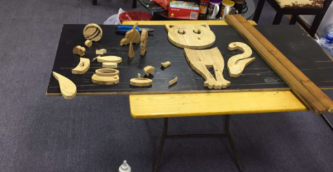 找來一張廢木板,接著籌備好在木板上進行噴漆解決。