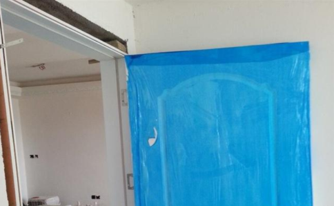 咱們從徒弟的裝載流程中能夠看見,徒弟先是在確認門套的尺寸后,在地面把門套給組裝好。接著再投到門洞里,以及一圈用木片給卡好,以做暫時固定。固然這類裝載方法和其余徒弟并沒有什么差別,門套也全是如此裝載的。但是徒弟接下來的解決,就十分特別了。從下圖中能夠看見,徒弟還在門套雙方根據等距離的方法,固定了幾個小鐵片。