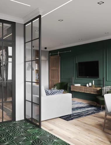 墻架,也稱為墻架成型,是最近流行的另一種外觀,您可以了解原因。無疑為任何房間(在這種情況下為客廳)增添了一絲維多利亞時代的優(yōu)雅。它不僅使空間感覺成熟(而不是過時),而且它還可以像在一天中為一幅畫框畫一樣框住電視。涂上幾層森林綠色的油漆,你很快就會像歐洲皇室一樣生活。