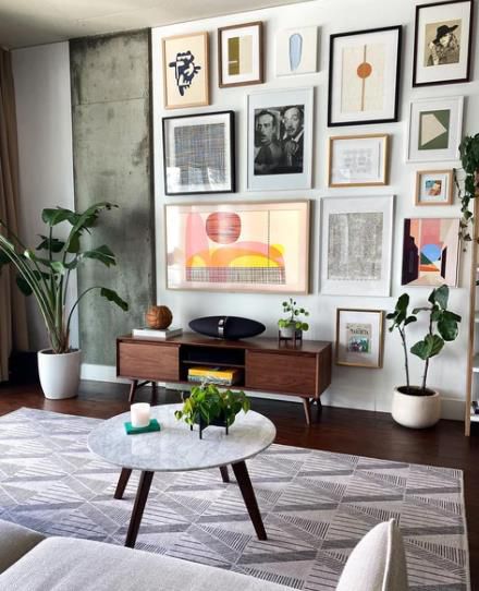 它本身不是口音墻,但至少值得一提。裱框藝術(shù)印刷品,在電視周圍創(chuàng)建了這個畫廊墻,這基本上與藝術(shù)沒有區(qū)別。絕對不像我們看過的其他款式那樣簡約,但如果你想要更折衷一點的東西,它仍然很漂亮。