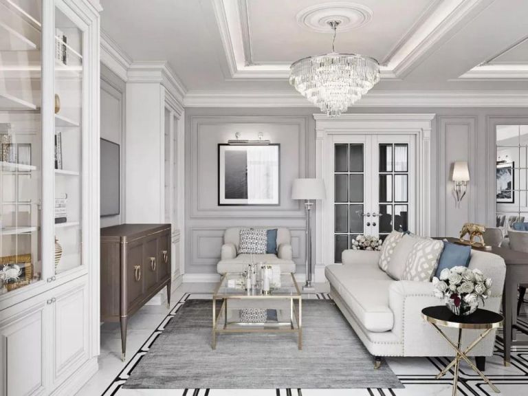 珍珠白的護墻板色系會提亮整個空間色彩和清新讀,擴大延伸視覺感。特別適合美式風格或法式風格,會讓人覺得奢華華麗感十足。