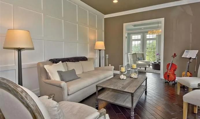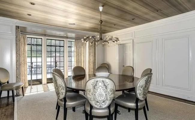 “凸起面板”式的護墻板,比影盒式的要貴。這種風格正式、優(yōu)雅且非常傳統(tǒng)。房主選擇鑲板整個房間,給它一個非常戲劇性的外觀。